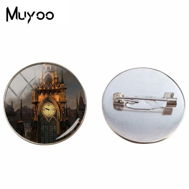 2019 جديد خمر برج الساعة دبابيس الفن اليدوية بروش فضة الزجاج كابوشون مجوهرات جولة صور دبوس جودة عالية 2021 من Xiale 33 35ر س موبايل Dhgate
