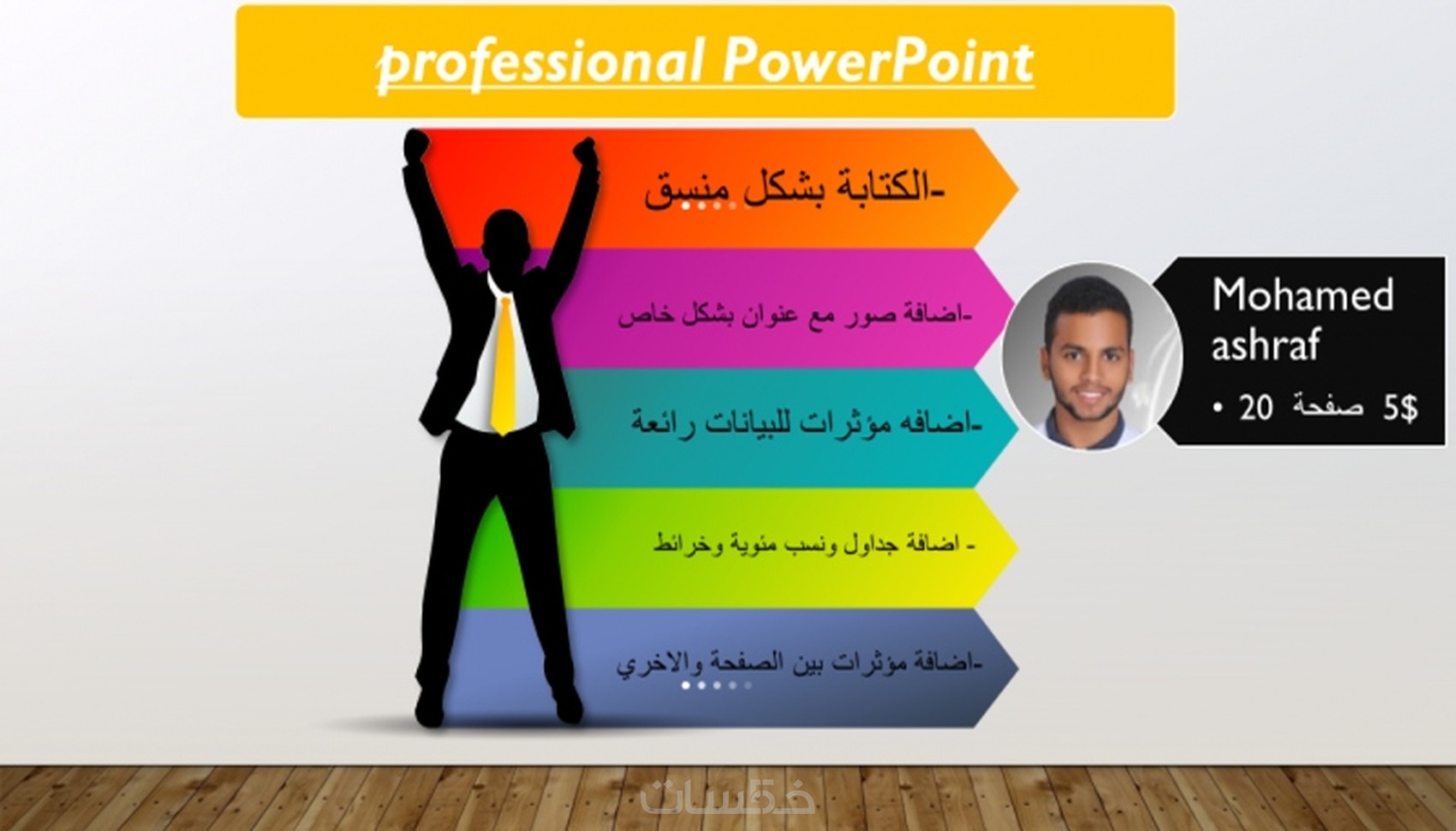 تصميم عروض تقديمي البوربوينت الاحترافية 5 دولار لكل 5 شرائح خمسات