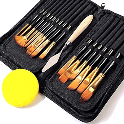 مجموعة ف رش الطلاء من بوسوبو 15 قطعة من ف ر ش الأكريليك ذات مقبض خشبي احترافي ف رش ألوان مائية ف رش زيتية لف رش رسم الوجه والجسم على الوجه تشتمل على علبة سفر وسكين لوحة الألوان