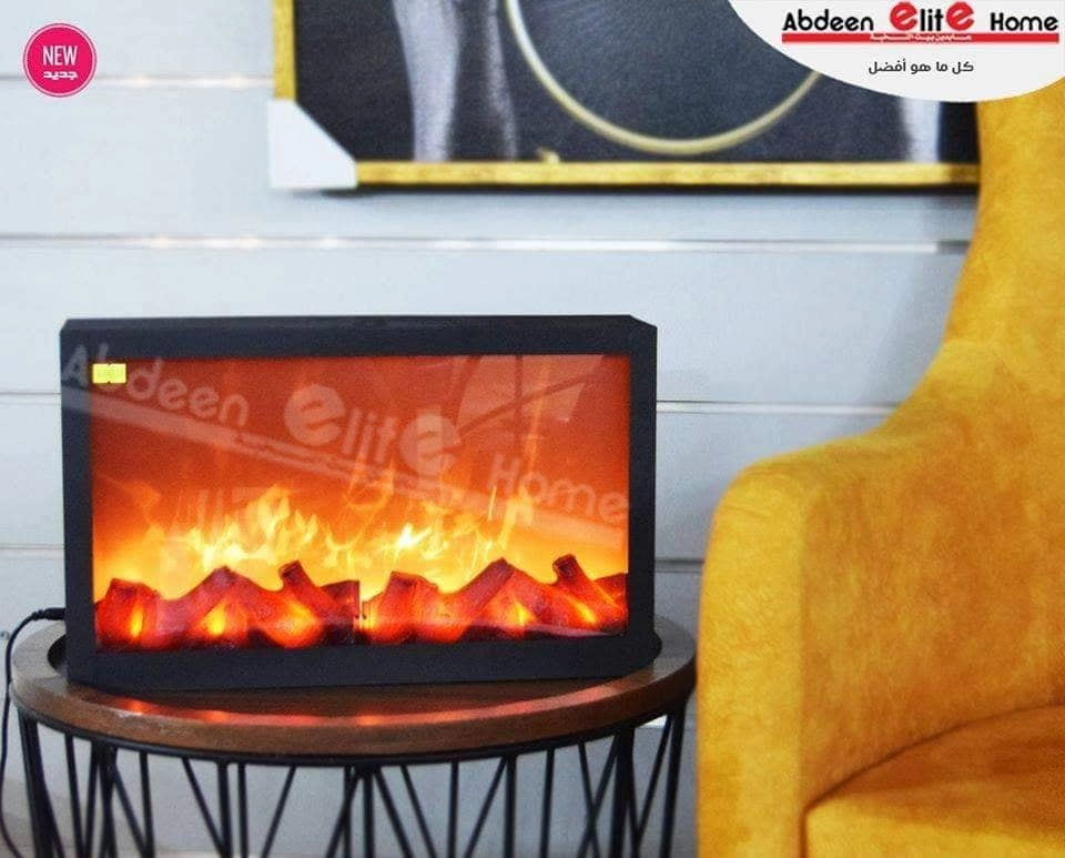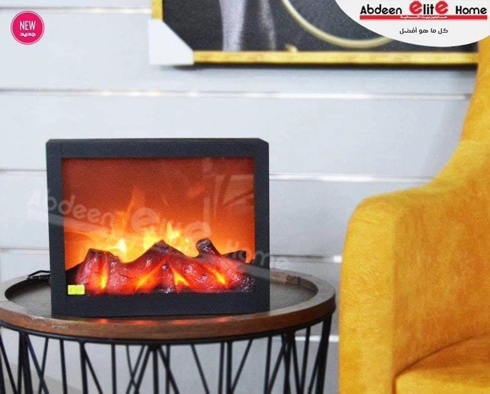 تحفة على شكل برواز مستطيل وبشكل صوبة حطب من الداخل تعمل على الكهرباء