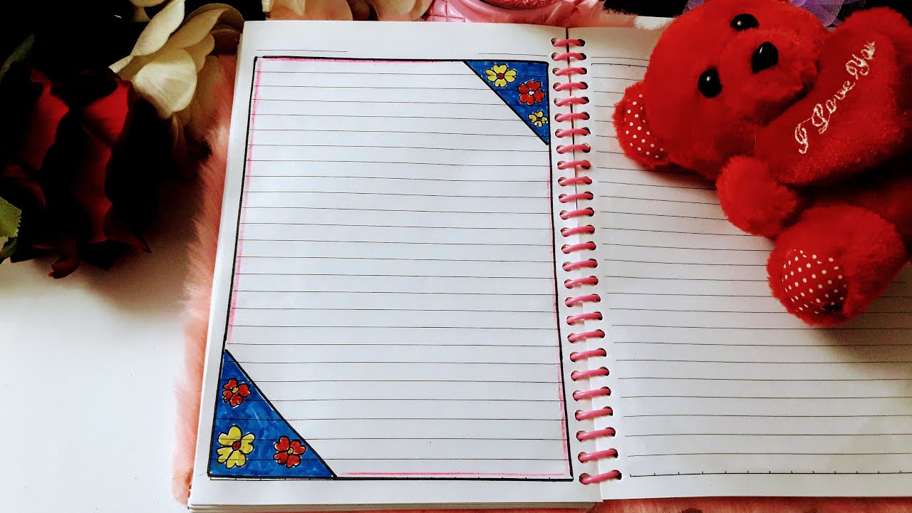 تزيين الدفاتر المدرسية من الداخل للبنات سهل خطوة بخطوة تسطير الكراسة بشكل فيونكة جميلة تزيين دفاتر Floral Border Design Page Borders Design Borders For Paper