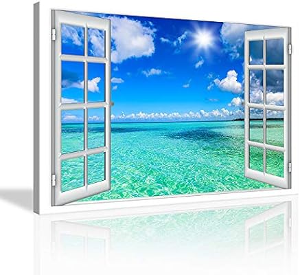لوحة فنية جدارية مطبوعة برواز نافذة كبير من Kalawa مطبوعة على قماش كتاني لتزيين المنزل وغرفة المعيشة وغرفة النوم بإطار خشبي جاهز للتعليق 24 H X 36 W Amazon Ae