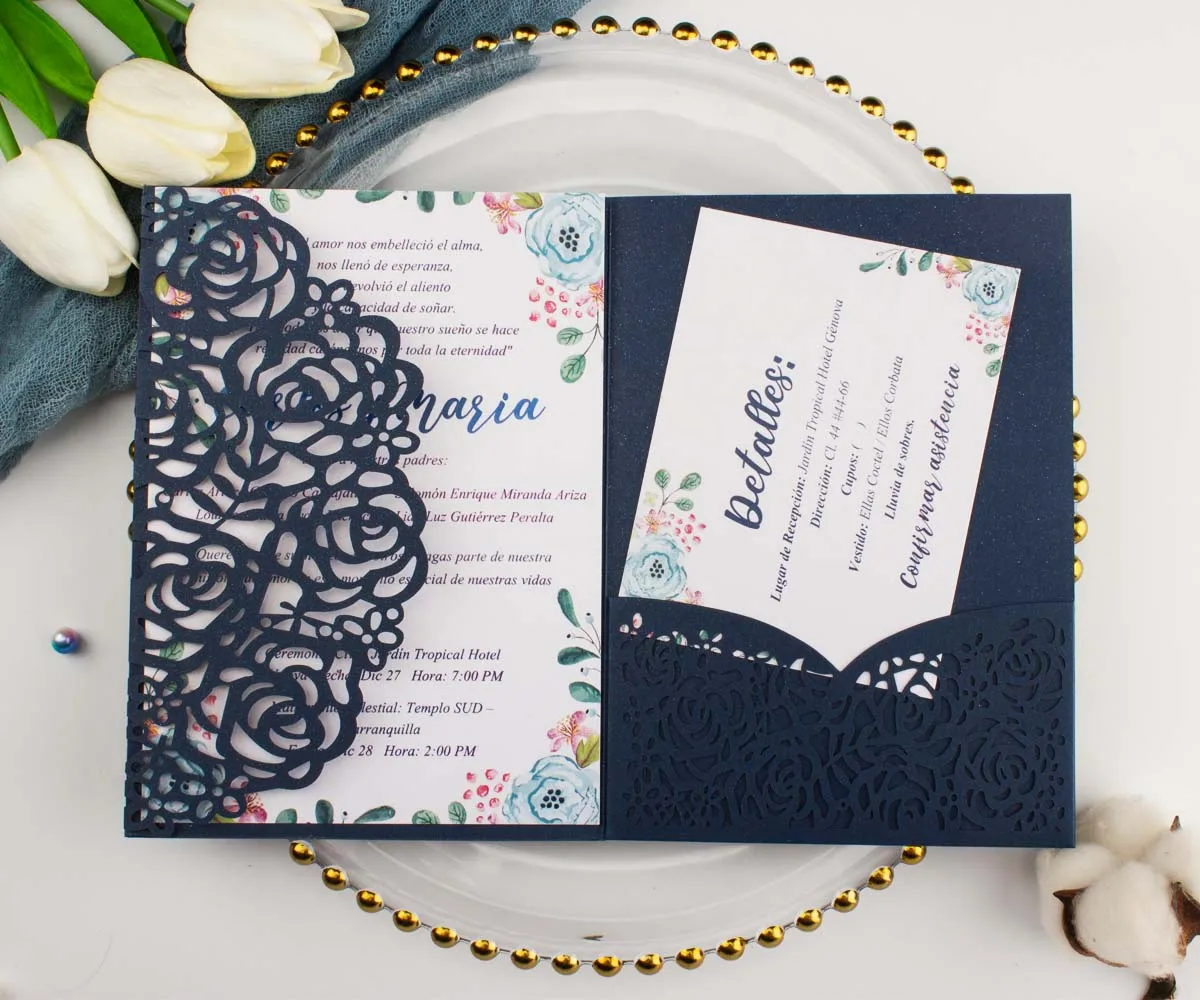 الليزر قطع تصميم إدراج بطاقات بطاقة دعوة مع مغلفات دعوات الزفاف A285