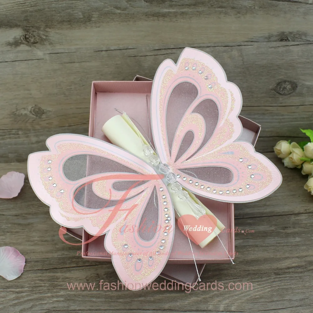 الفاخرة الملكي الوردي فراشة الشكل انتقل دعوات زفاف بطاقة للبيع Buy دعوات زفاف على شكل لفافة على شكل فراشة دعوات التمرير للبيع بطاقة حفل زفاف فاخرة على شكل لفافة