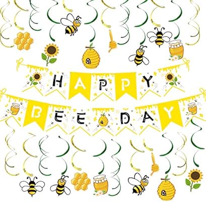 زينة دوامية للتعليق على شكل نحلة وعسل البامبل مزينة برسمة نحلة وعبارة Happy Birthday من Cieovo Amazon Ae