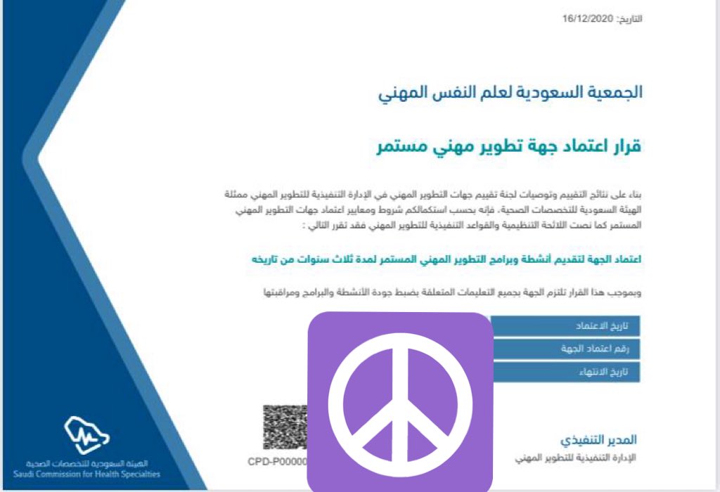 شهادة التصنيف المهني من الهيئة السعودية للتخصصات الصحية سارية المفعول