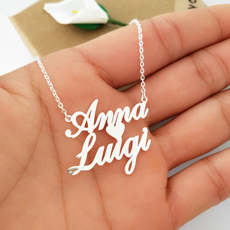 قلادة على شكل قلب مخصصة تحمل اسمين قلادة شخصية مصنوعة من الفولاذ المقاوم للصدأ على شكل زوجين تحمل اسم قلادة مجوهرات Bff هدايا للنساء في قلائد بحلية من الإكسسوارات والجواهر على Sale Unohama Club