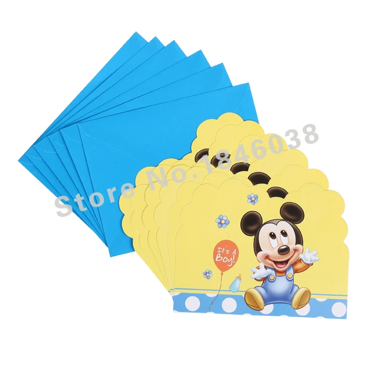 6 قطع المغلف شكل طفل ميكي ماوس موضوع حزب بطاقة دعوة عيد الاطفال طفل بطاقة عيد إمدادات الديكور Baby Birthday Decoration Suppliesparty Invitations Aliexpress
