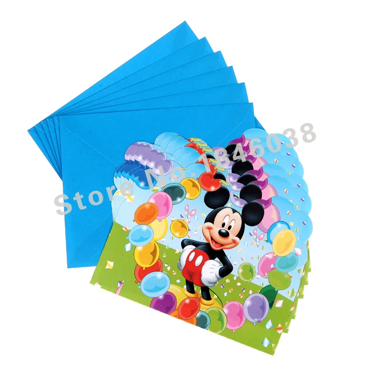 ميني ماوس بطاقات دعوات للأطفال حفلة عيد ميلاد تفضل بطاقات دعوة عيد ميلاد سعيد لوازم الحفلات 6 قطعة المجموعة بطاقات ودعوات Aliexpress