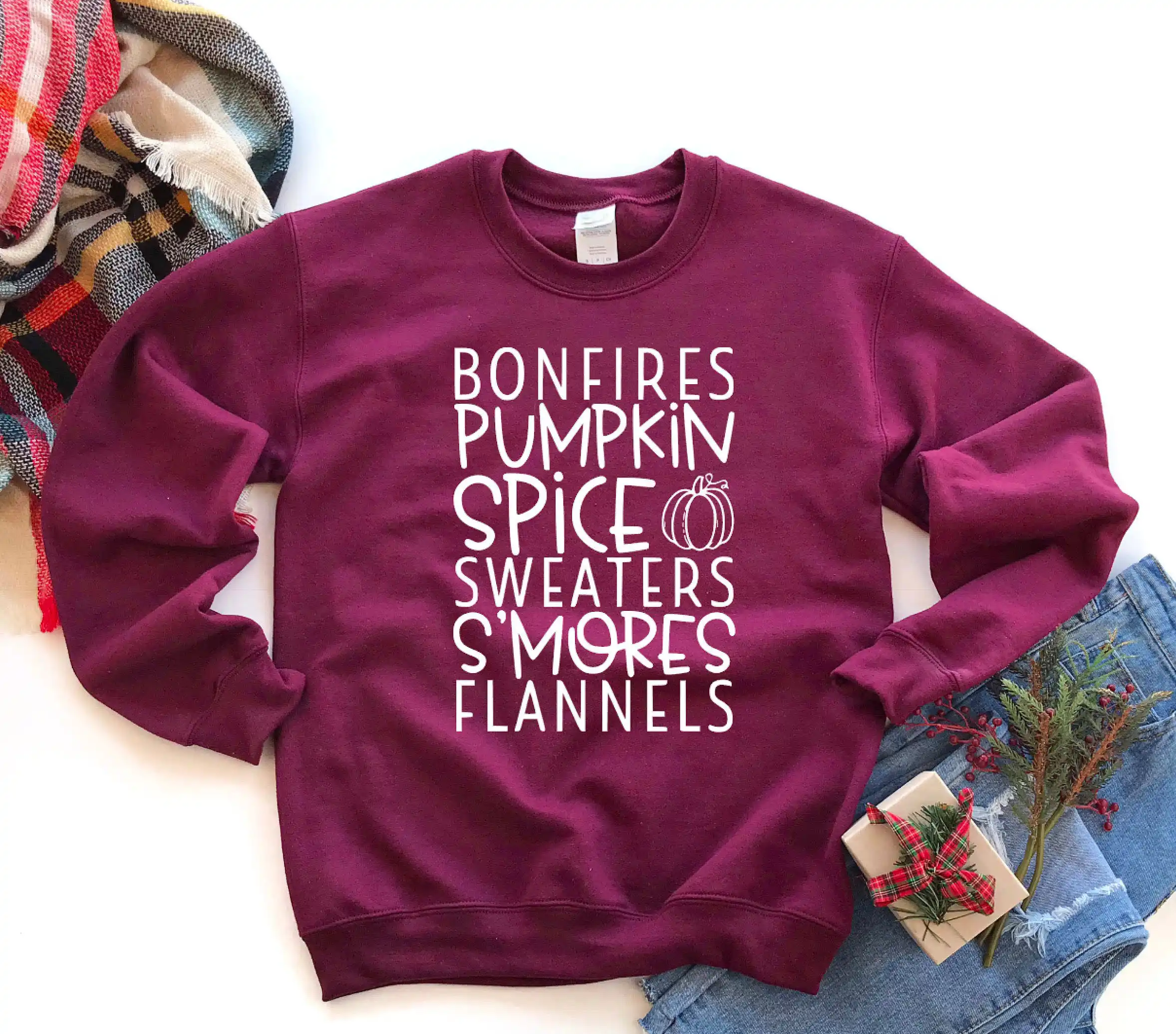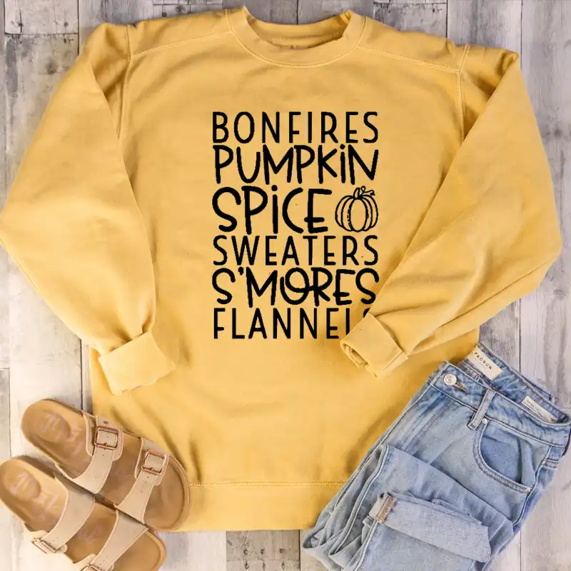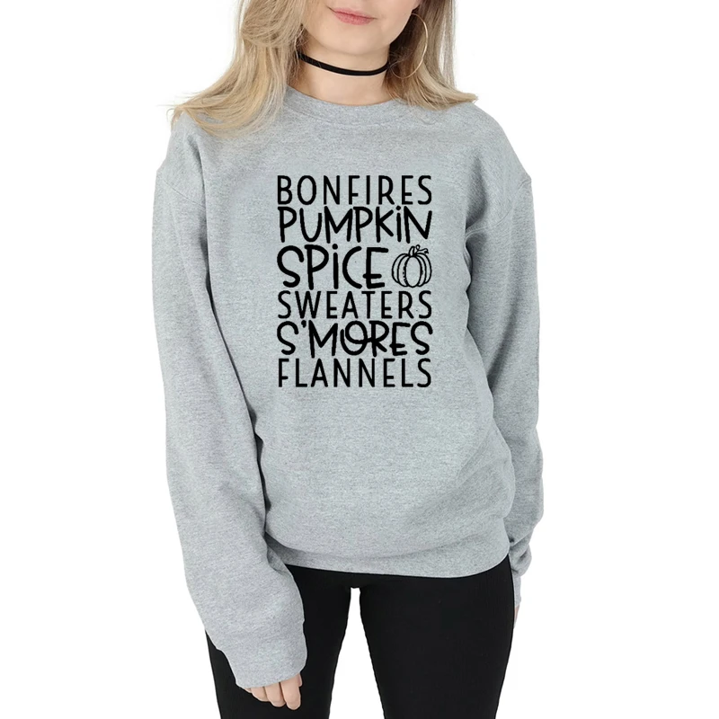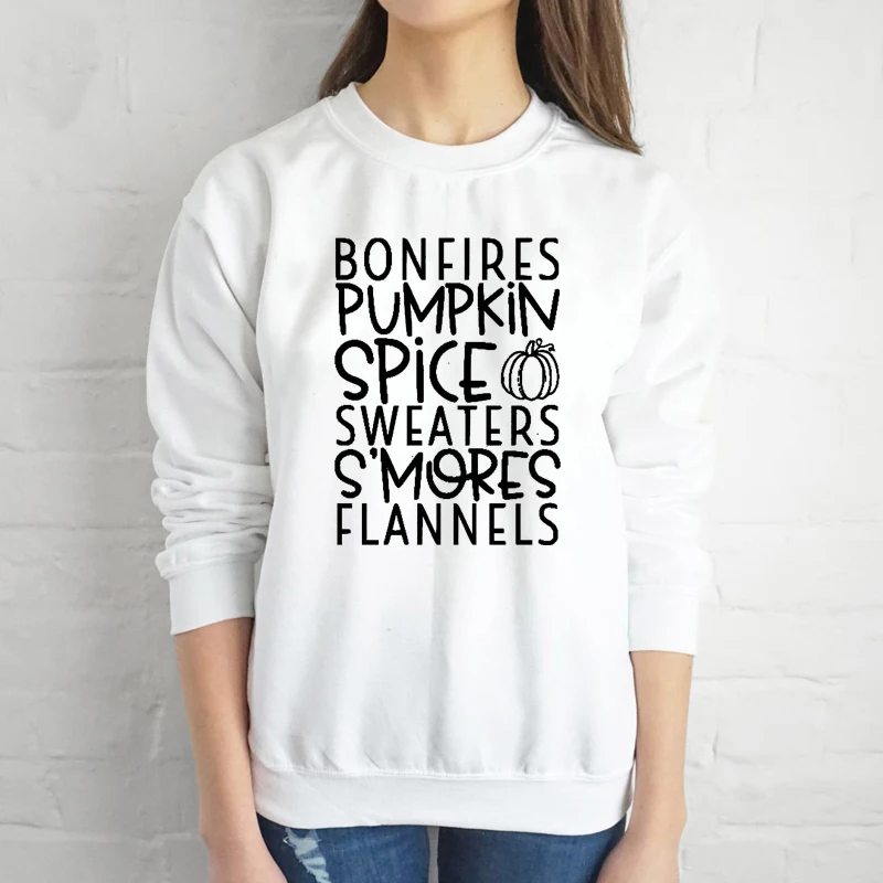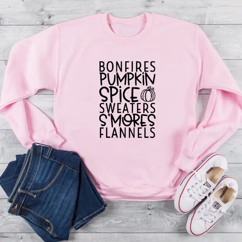 كنزة على شكل يقطينة وبهارات من Bonfire كنزة S Mores Flannels مكتوب عليها كلمات الخريف سترة مضحكة للسيدات على الموضة للهالوين بلوفر مطبوع عليها شعار قمصان وسترات بقلنسوة Aliexpress