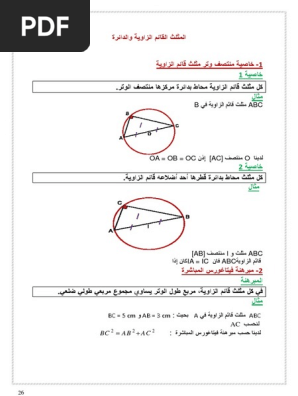 درس المثلث القائم الزاوية و الدائرة
