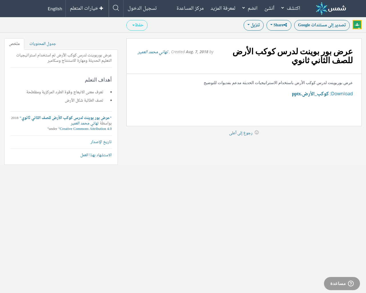 عرض بور بوينت لدرس كوكب الأرض للصف الثاني ثانوي Shms Saudi Oer Network