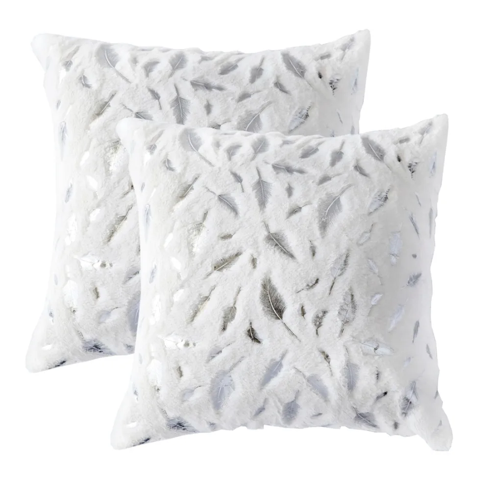 الوسائد ديكور المنزل ل أريكة الأريكة 45x45 الأبيض رمي وسادة تغطي مجموعة للسرير مع الذهب الفضة المطبوعة ريشة Gigizaza في غطاء مسند من المنزل والحديقة على Buy Unohama Club Store