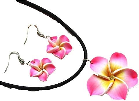 طقم مجوهرات من البوليمر مكون من سلسال بقلادة واقراط بتصميم شكل وردة كلاي تاتو لون زهري Amazon Ae