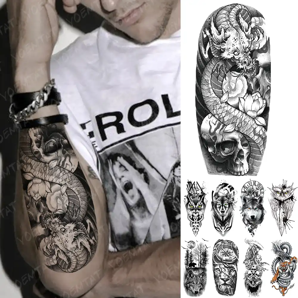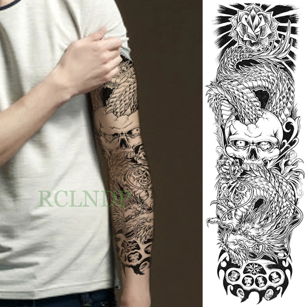ملصق تاتو مؤقت مضاد للمياه كامل الذراع مقاس كبير ملصقات تاتو على شكل جمجمة التنين وشم مزيف تاتو للرجال والنساء Tattoo For Men Waterproof Temporary Tattoosfake Tattoo Aliexpress