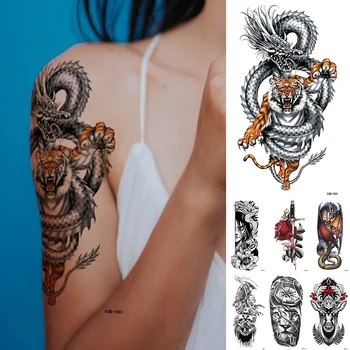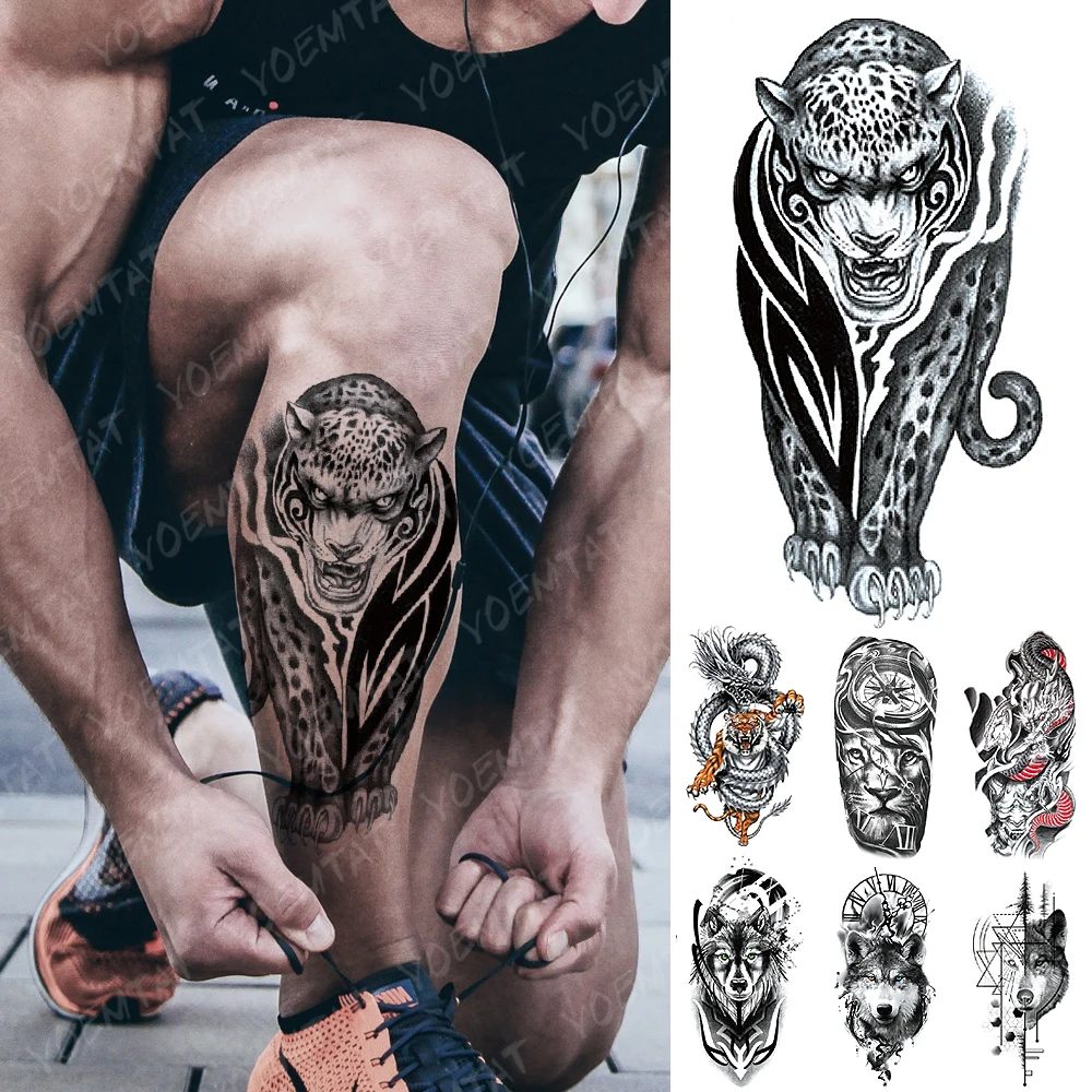 ملصق تاتو مؤقت مضاد للمياه تاتو على شكل فهد تاتو تنين نمر وولف أسد فن الجسم الذراع وشم مزيف للنساء والرجال وشم مؤقت Aliexpress