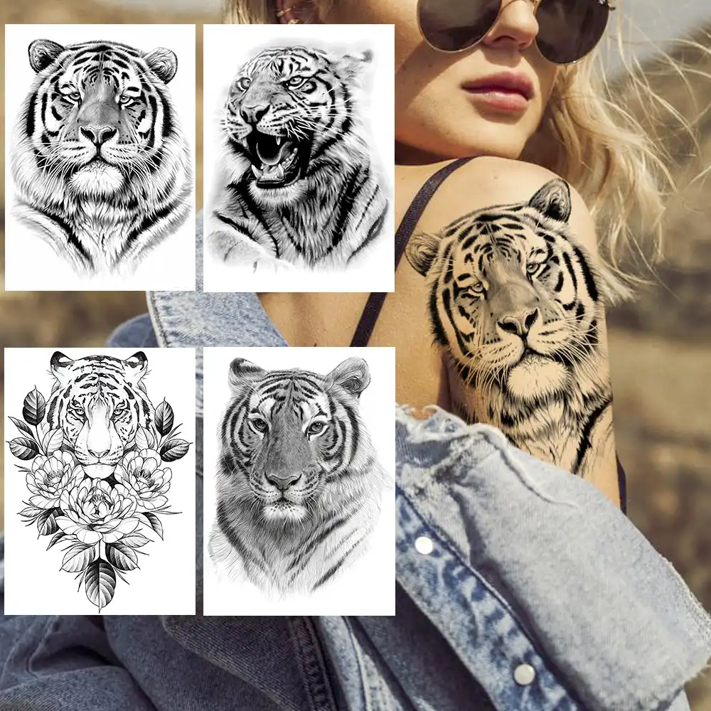 ملصق تاتو مؤقت مضاد للمياه تاتو على شكل زهرة النمر للرجال والنساء تاتو ملصقات تاتو تاتو مزيفة رسومات الجسم Tiger Tattoo Tiger Tattoos For Mentattoo For Men Aliexpress