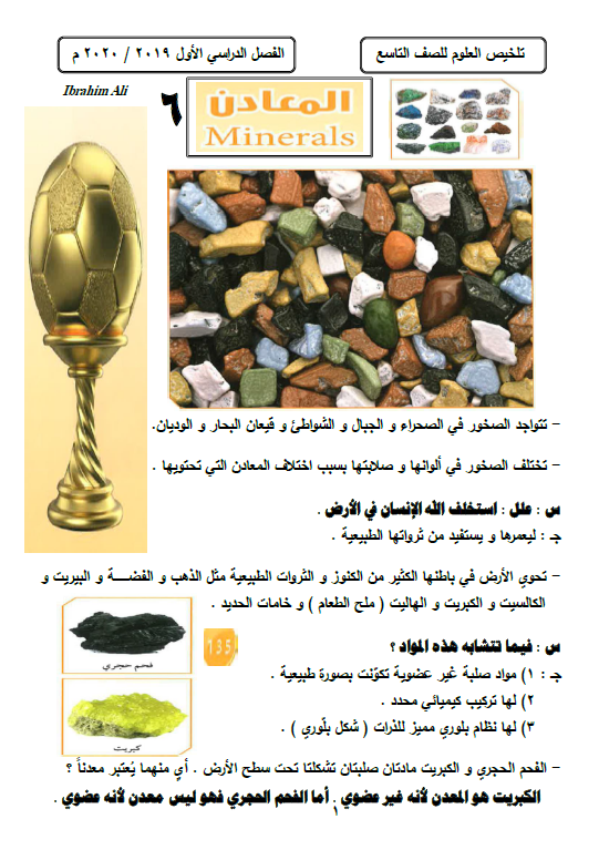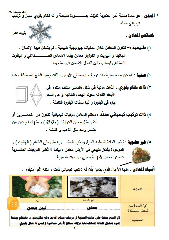 تلخيص علوم المعادن الصف التاسع إعداد ابراهيم علي مدرستي الكويتية